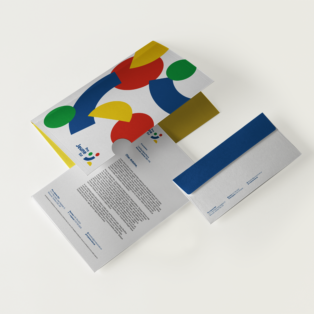 Pro Jeune Est est un organisme à mission sociale et éducative fondé en 1989. Pour ses 30 ans, l'organisation voulait actualiser son identité visuelle pour permettre de donner un visage plus jovial et humain à sa marque.